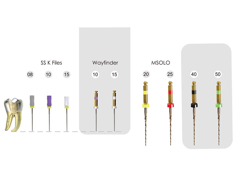 2. آماده سازی 2/3 مسیر کارکرد روت کانال با استفاده از فایل MSOLO سایز 20 و یا 25 (سرعت مناسب: 450 دور در دقیقه و تورک مناسب: حداکثر 3 نیوتن-سانتی متر)