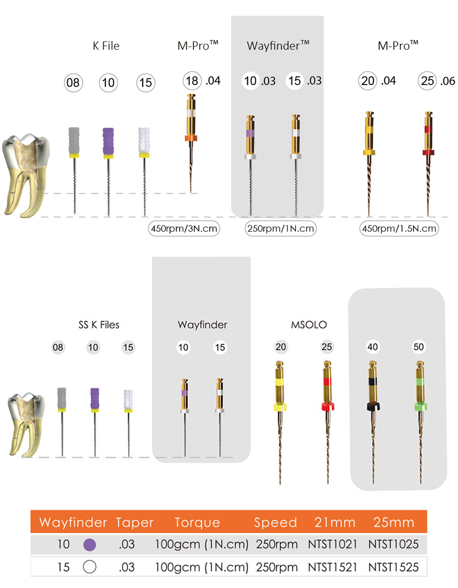 فایل گلایدپث Wayfinder، در سیستم M-Pro بعد از فایل روتاری سایز 18 به منظور پیدا کردن مسیر کانال و در سیستم رسیپروک MSOLO برای بازکردن 2/3 کانال و ایجاد مسیر کانال بعد از آماده سازی توسط فایل های دستی استفاده می گردد.