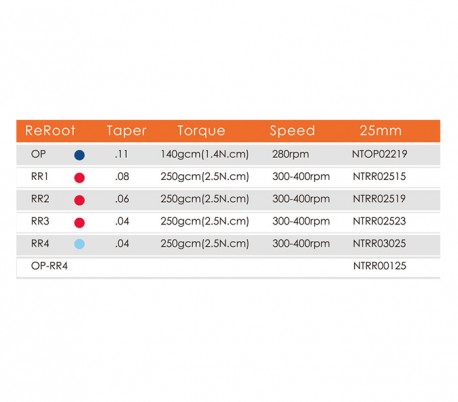 - NiTi ReRoot برای درمان دوباره ریشه (ری اندو) و خارج سازی مواد پرکردنی موجود در کانال مثل گوتا پرکا و یا مواد رزینی استفاده می گردد.