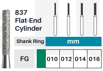 فرز الماسه توربین مدل فیشور (استوانه ته صاف) آر دی تی RDT Flat End Cylinder Diamond Burs