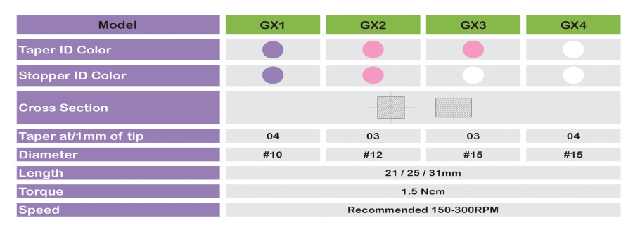 - سایز : GX1 ، GX2 ، GX3 ، GX4